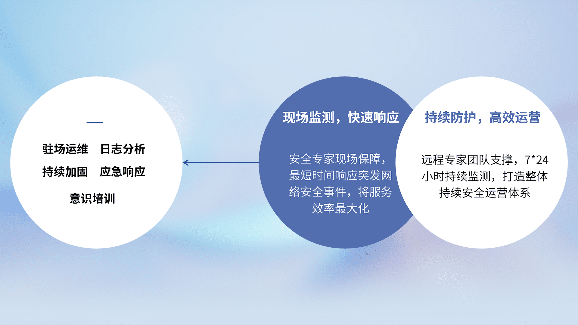 7X24小时持续监测安全事件,保持安全策略有效性,降低资产脆弱性风险,,精准拦截黑客攻击,,,减少被黑客利用的机会,,,,第一时间遏制,,,降低损失。。。